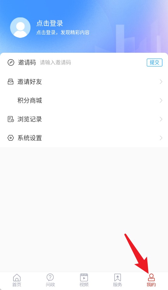 5、进入“我的”页面可登录账号,查看积分、浏览记录及系统相关设置内容。