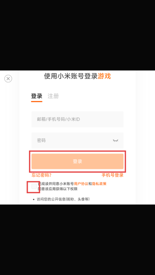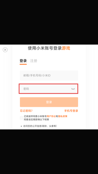 1、打开登录界面,输入【邮箱】、【手机号码】、【小米ID】其中一个账号。