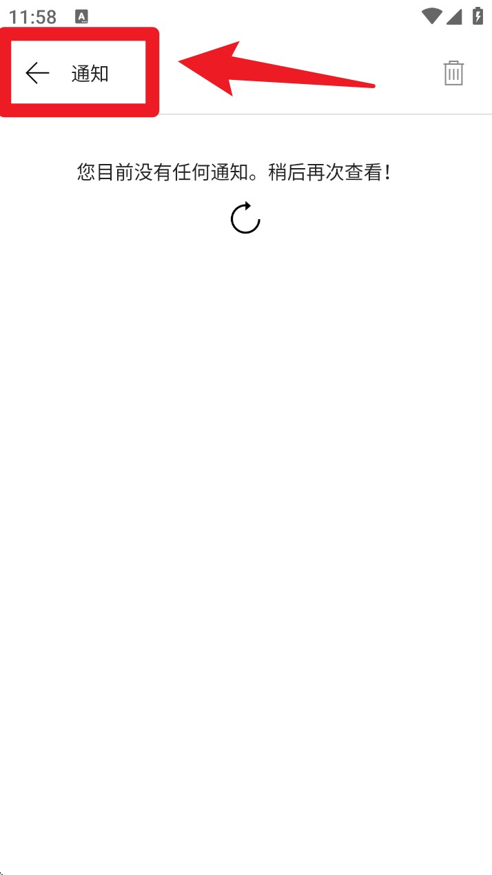 3. 点击右上角的铃铛图标可进入通知中心,查看系统推送的阅读提醒、账户更新或相关服务公告,当前无内容时会显示提示文字。