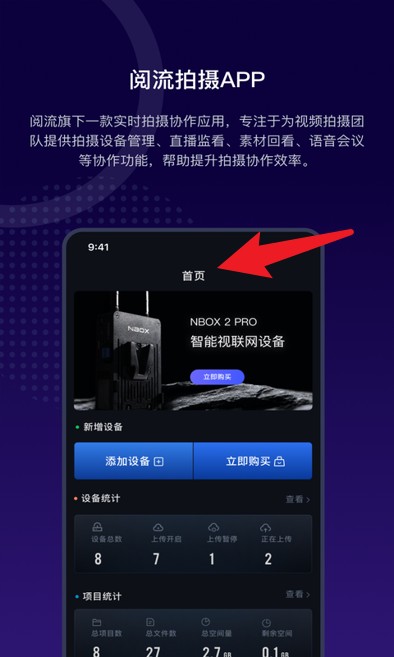 阅流拍摄app是为视频拍摄团队量身打造的实时协作利器!支持管理NBOX、航拍器、运动相机等多种主流设备,满足多机位多场景拍摄需求。实时直播监看、素材自动上传回看、语音会议即时沟通,全流程高效协作不卡壳!拍摄团队提效利器,就用阅流拍摄APP!