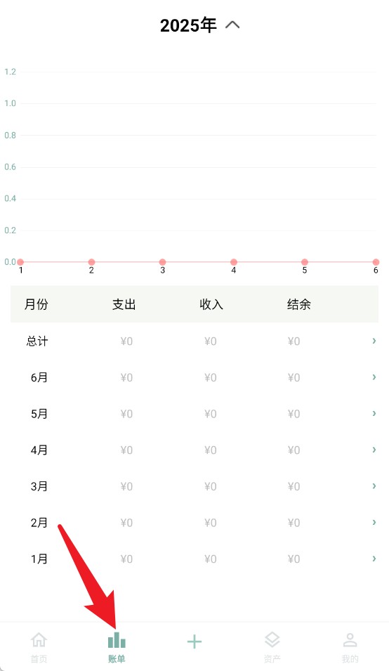 2.点击“账单”按钮进入月度收支明细页面,按月份查看历史账单,支持图表统计查看。