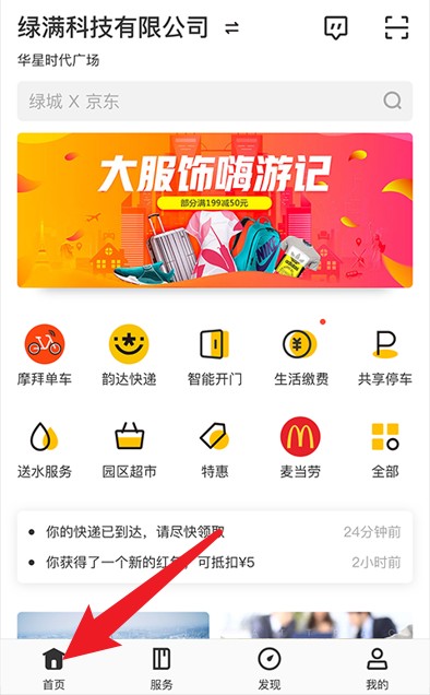 2、登录成功后进入首页,可浏览各类服务入口和活动广告,点击图标即可快速访问相应功能页面。