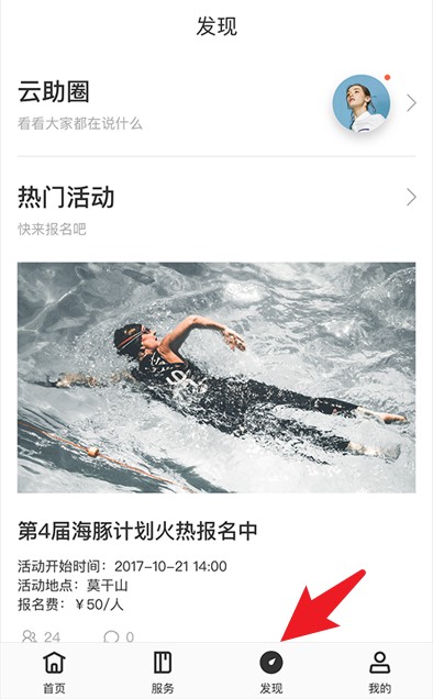 4、点击“发现”板块可查看云助圈动态和最新活动信息,还能报名参与平台组织的精彩活动。