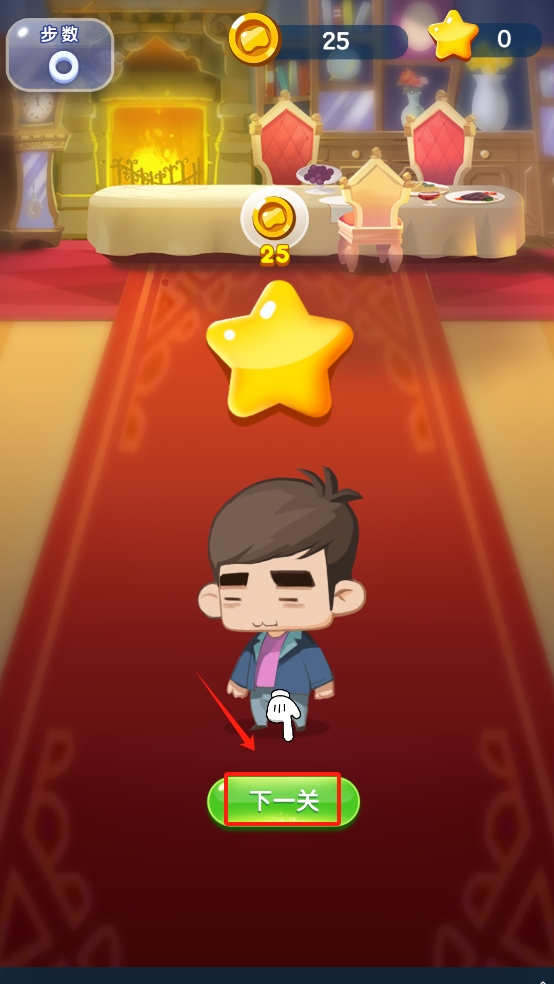 3、通关后,点击 “下一关” 按钮,继续挑战下一关卡。