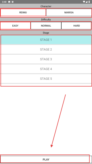 2、选择角色、游戏难度、对决舞台后,点击【PLAY】进入战斗。
