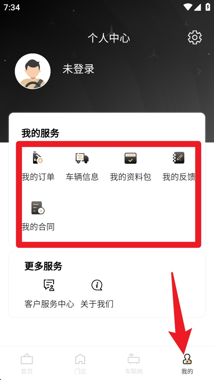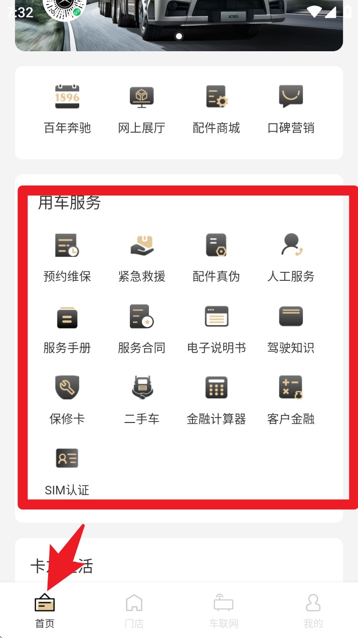 1. 进入首页后,点击「用车服务」模块,可查看预约维保、配件真伪、电子说明书、客户金融等功能,一站式管理你的车辆服务事项。