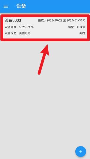 1、点击设备列表中的设备卡片,可查看设备编号、机型、位置说明与授权时间等详细信息。