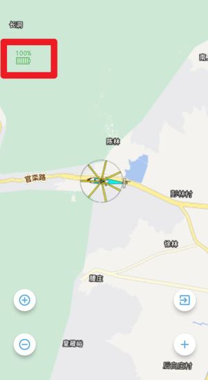 2、作业地图界面中显示当前设备位置、电量百分比及飞行状态,便于实时监控作业进展。