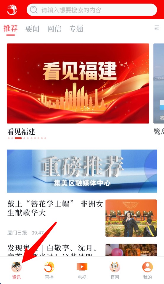 1、点击底部“资讯”按钮可浏览最新新闻信息,内容覆盖时政要闻与本地动态内容。