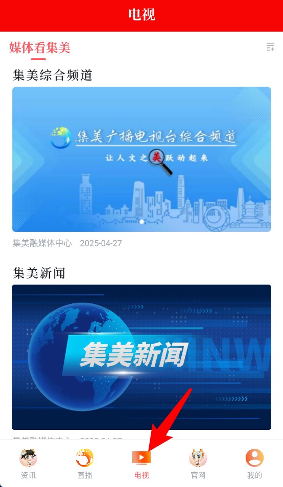 3、在“电视”栏目中可查看集美广播电视台频道内容,包括新闻资讯与专题节目。