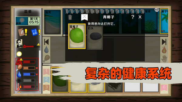 2.生存状态管理:需持续监控饥饿、口渴与健康指数,合理安排饮食与休息节奏,保持状态稳定才能活得更久。