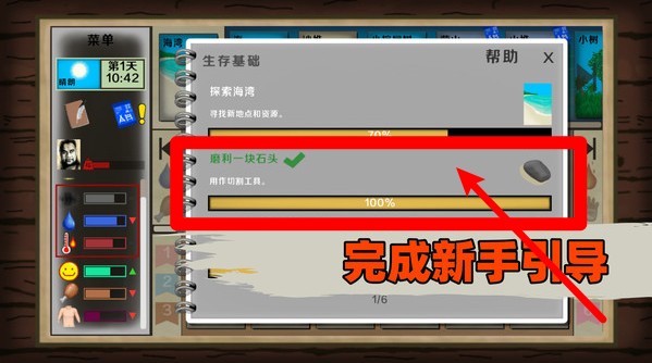 2.完成基础任务:游戏前期会提供新手引导任务,如“捡一块石头”等,通过操作学习生存工具的获取与使用方法。
