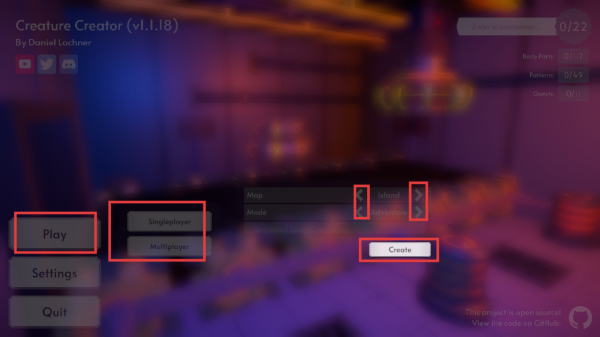 1、打开游戏,点击【Play】后选择单人或多人模式,接着选择地图和模组,最后点击【Create】即可。