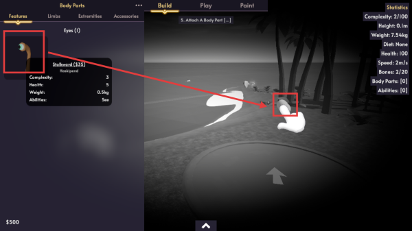 3、收集身体部位后,拖动部位到生物上即可组装并获得对应能力。