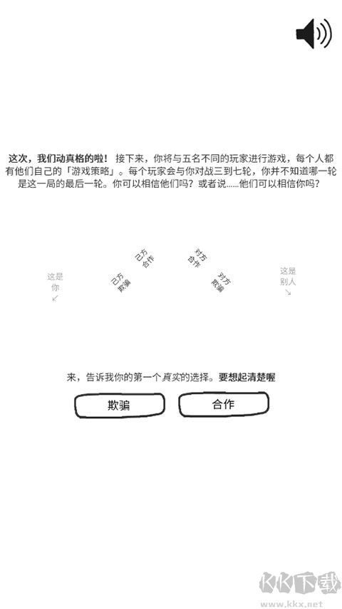 信任的进化官方版是款烧脑的休闲益智手游,玩的时候能体验心灵博弈,可以选合作或者欺骗。选欺骗可能拿更多收益,也可能啥都得不到,选合作可能共赢,也可能被坑,真心或者假意都可能有收获。每次做的选择都会影响对方下一次的选择,得仔细琢磨着来。