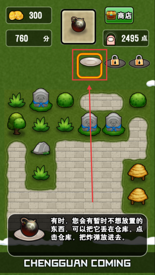 3、当遇到不想使用的物品时,点击框选处可以暂存,需要用时再次点击并放置即可。