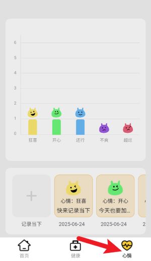 4、在“心情”页面记录每日情绪变化,系统通过统计图帮助用户直观了解自己的心理状态。