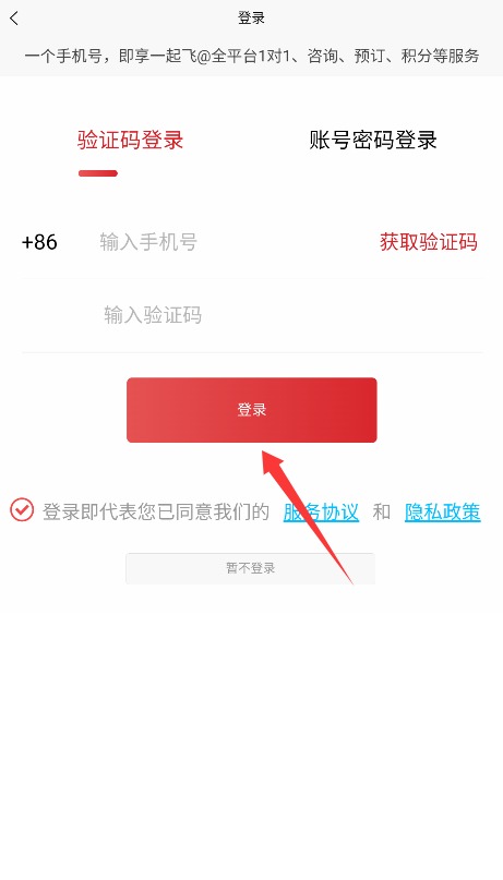 3、输入注册手机号和正确验证码,勾选同意协议后点击"登录"按钮完成登录。