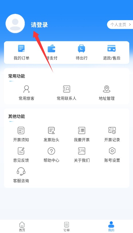 2、在我的个人中心点击左上角的请登录按钮,进入账号验证界面开始登录流程。