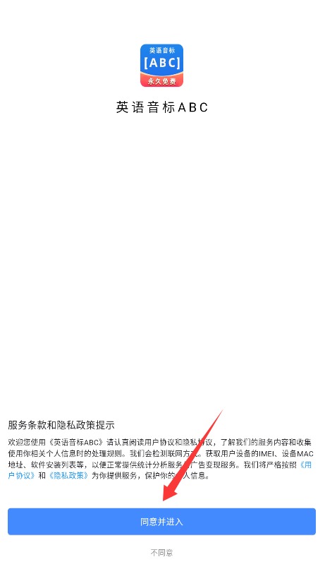 1、初次使用需完整阅读平台服务条款与隐私政策,确认后点击同意并进入应用。