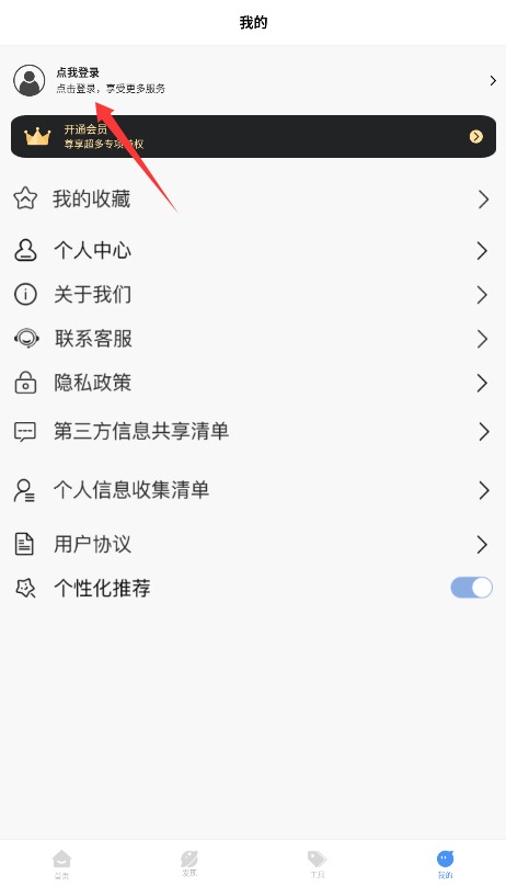 2、在我的个人中心点击左上角登录按钮,进入账号验证界面开始登录流程。