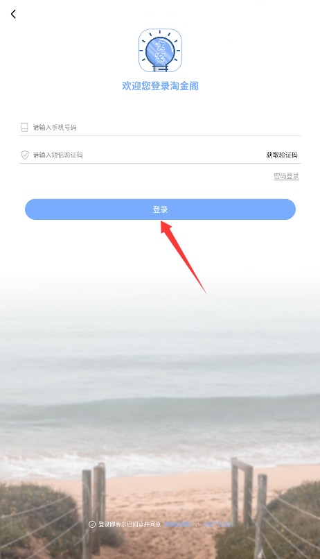 3、输入手机号获取验证短信,填写验证码并勾同意选协议后点击登录完成认证。