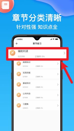 1、点击进入章节练习模块后,按照知识类别划分进行选择,便于有针对性地复习练习。