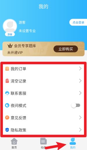 4、进入“我的”页面后可登录账号、购买VIP权限,并支持切换夜间模式与联系客服。