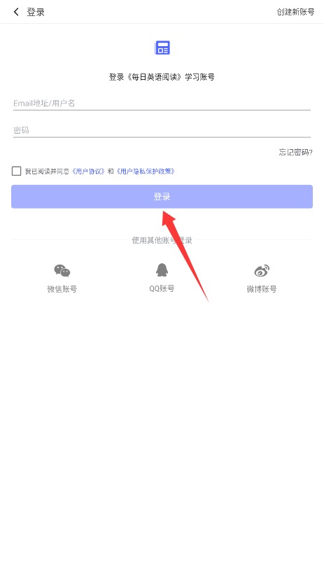 1、使用注册邮箱或用户名登录,输入密码并勾选同意用户协议后点击"登录"进入应用。
