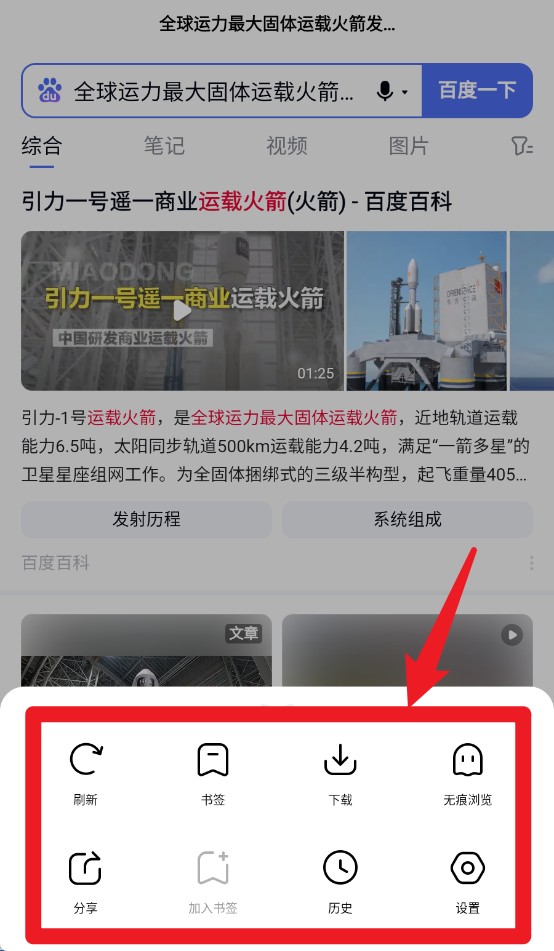 3、点击底部右侧三横图标打开功能菜单,包含书签、下载、设置等功能选项。