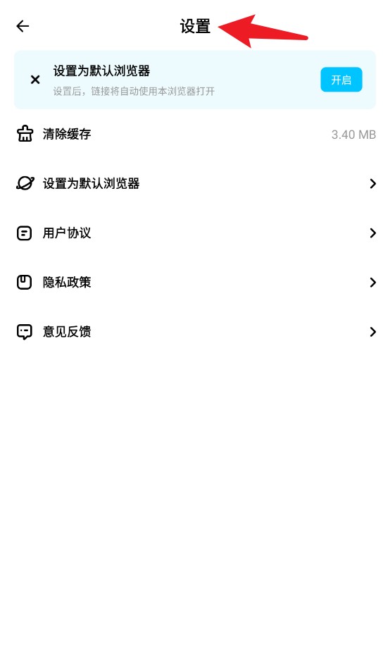 5、设置页面可选择设为默认浏览器、清除缓存、查看协议及提供使用反馈。