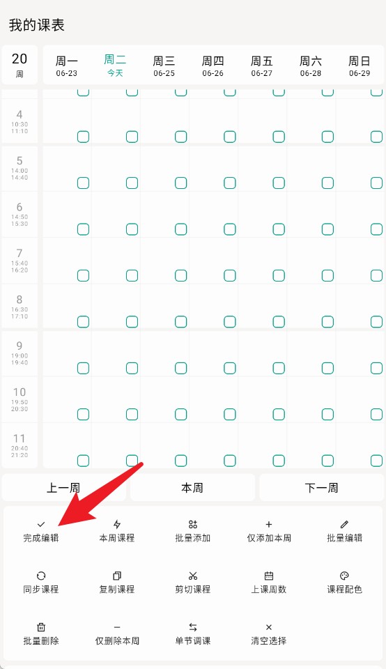 4.编辑模式下可批量添加课程、设置周数、删除课程等,支持高效灵活管理整周课程内容。