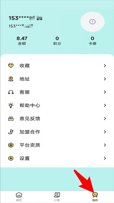 5、点击底部导航“我的”,可查看余额、地址、客服、帮助中心、平台资质等个人相关信息。