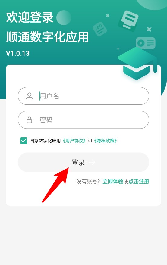 2、登录页输入用户名与密码即可进入系统,首次使用可选择体验或点击注册开通账号。