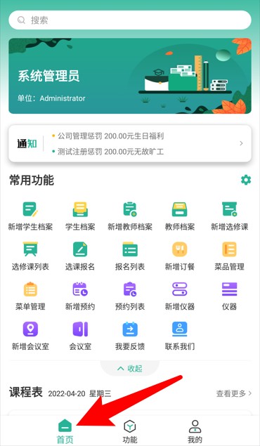 3、首页功能分类清晰,支持学生档案、教师档案、课程安排等多项校园管理功能。