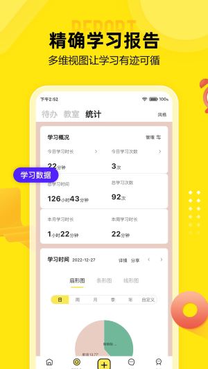 3、数据可视化能力强,自动生成学习统计图表,帮助用户清晰了解效率变化趋势。