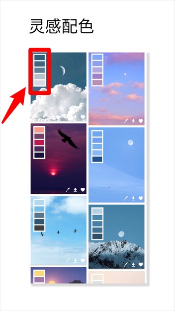 3、灵感配色版块从实景图提取多组主色调,适用于插画、设计等创作场景参考。