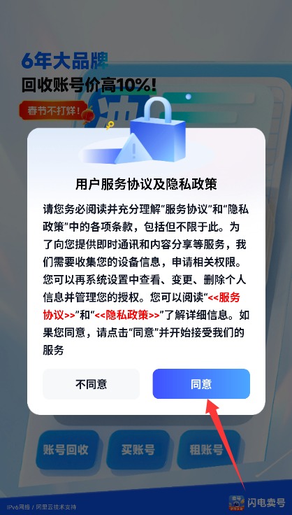 1、初次使用需完整阅读平台服务条款与隐私政策,确认后点击同意按钮进入应用。