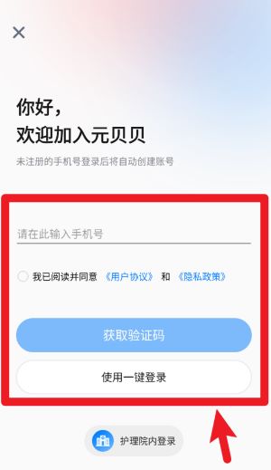 1、打开元贝贝App后,首先输入手机号码并同意协议,点击“获取验证码”完成账号登录注册流程。