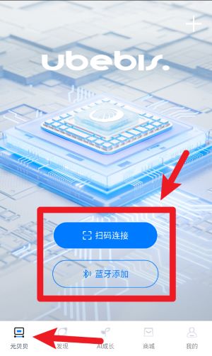 2、登录后在主页面点击“扫码连接”或“蓝牙添加”按钮,可快速将智能设备与手机成功配对。
