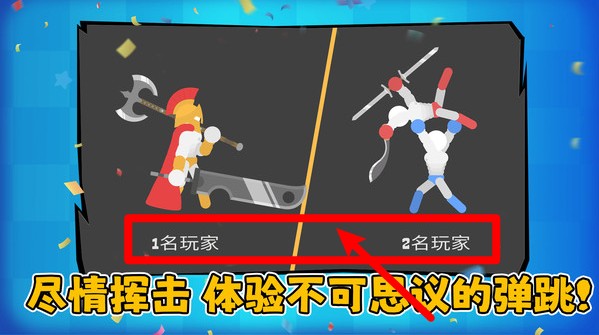 2.模式选择界面:提供单人挑战与双人对战玩法,自由切换模式,随时开局嗨翻整场乱斗。