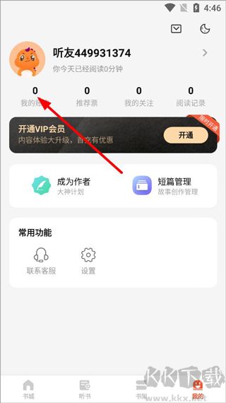 1、打开奇迹文学app,点击进入我的页面;