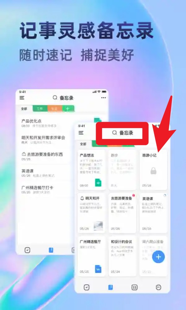 2. 进入首页点击“备忘录”板块,可随时新增灵感笔记、临时事项或生活片段,并支持关键词搜索快速定位已有记录。