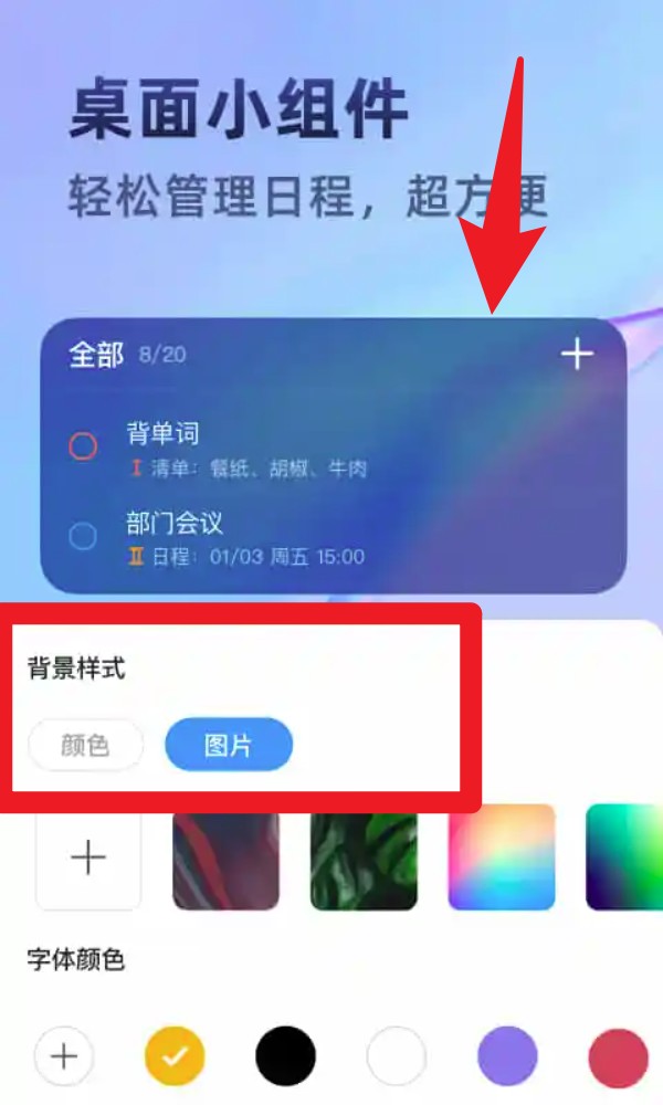 4. 若想方便查看任务,可添加桌面小组件,自定义背景样式和字体颜色,快速预览今日待办,无需进入App。