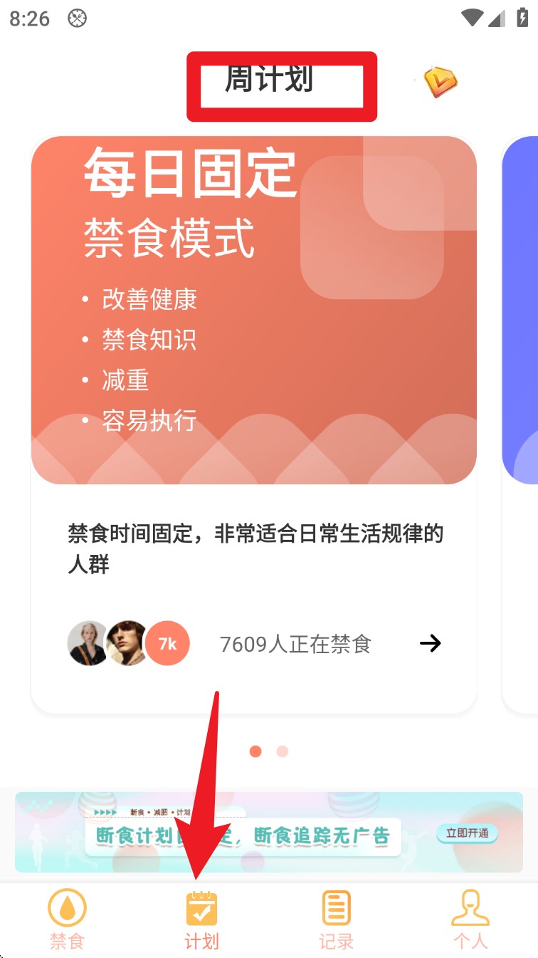 4. 若想调整模式或安排计划,可在底部点击“计划”选项,进入周计划界面,自定义每天的禁食时段与策略。