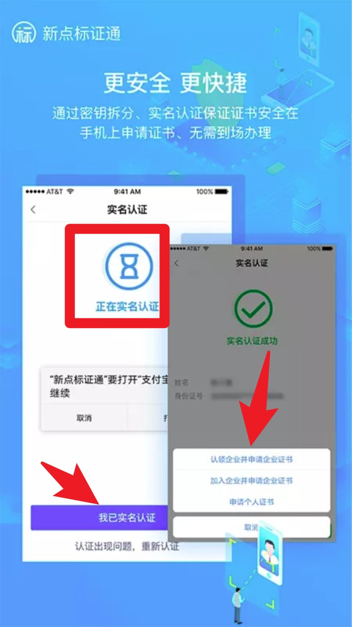 通过密钥分割和实名认证,证书可以在手机上安全申请,无需前往现场。