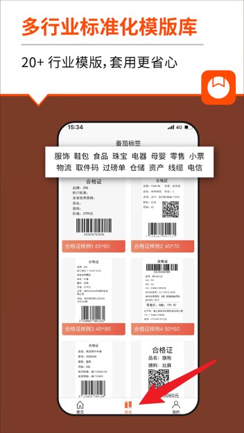 3、内置二十多个行业标准模板,覆盖服饰、食品、电器等,选用模板更省心更高效。