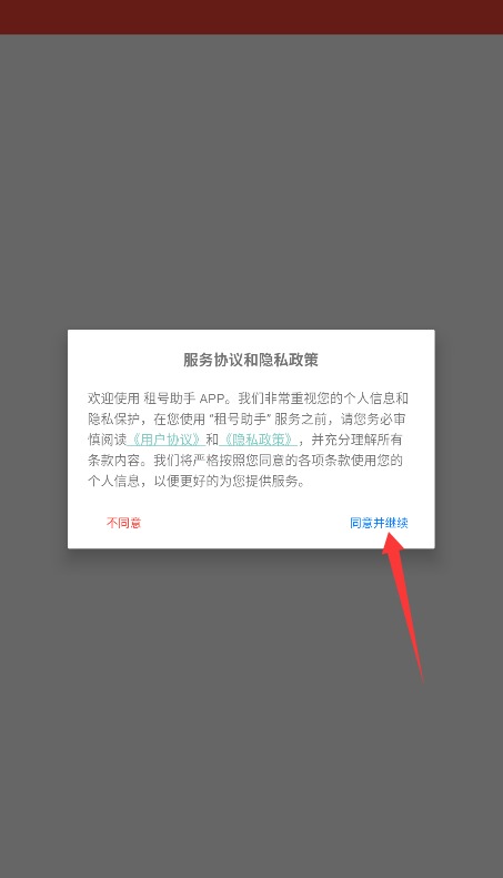 1、初次使用需阅读平台服务条款与隐私政策,确认后点击同意并继续进入应用。