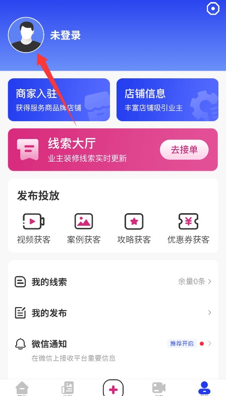 2、进入个人中心页面后,点击左上角的头像图标跳转至账号注册登录界面。