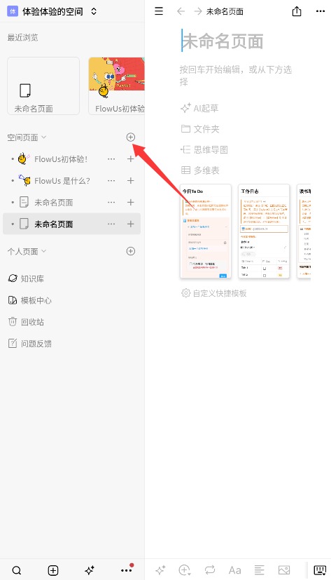 3、进入工作区后点击新建按钮创建空间页面,输入标题并添加所需文件后保存即可使用。